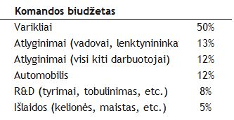 1. Šiek tiek nesuprantu. Jeigu varikliai sudaro 50% komandos biudžeto, tai marusia moka 30 limonų, o kokie rbr 105? Variklių kainos skiriasi, bet ne tiek manau. Apskritai, tas biudžetų paskirstymas turbūt yra skirtingas kiekviena komandai, tai nelabai jis čia tinka. Aišku gal ir klystu