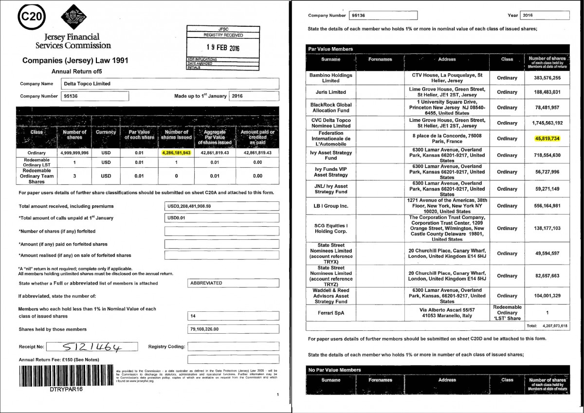 Panašu, kad procesas vyksta ilgėliau, nei manyta ir esminė problema – būtent FIA turimas 1% akcijų (rimti dėdės atrado rimtą dokumentą, kur matome, kad tiksliai FIA priklauso 1,07%).