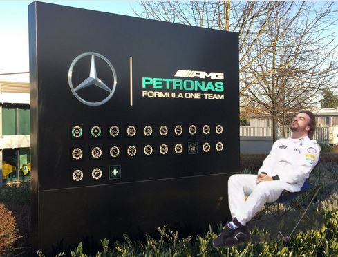 Internete jau apstu „memu“ apie Verstappeną ir kitus pilotus, skambinančius „Mercedes“ vadui, žymioji kėdė su joje besiilsinčiu Alonso prie „Mercedes“ būstinės ir t.t. ir pan. 🙂