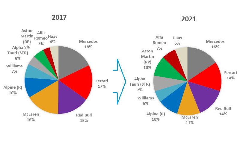 Įsigaliojus naujam, nuo 2021-ųjų iki 2025-ųjų metų pabaigos galiosiančiam „Concorde“ susitarimui, nauji F-1 savininkai „Liberty“ sugebėjo persiderėti, susigrąžinti pinigus ir kontrolę iš stambių komandų ir šiek tiek suvienodinti žaidimo sąlygas. Priminimui, anksčiau pinigai buvo skirstomi pagal štai tokią schemą: