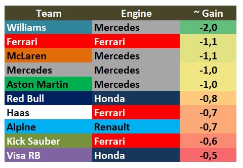 Visos komandos pagreitėjo, lyderiai – apie sekundę, peletono galas – kiek mažiau, o štai „Williams“ pradėjo važiuoti net dvejomis sekundėmis greičiau!