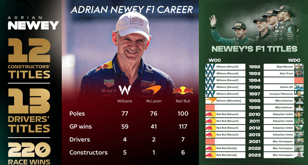 ➡️ Adrian Newey nuo 2025 metų kovo yra “Aston Martin” techninis partneris ir bendrasavininkis