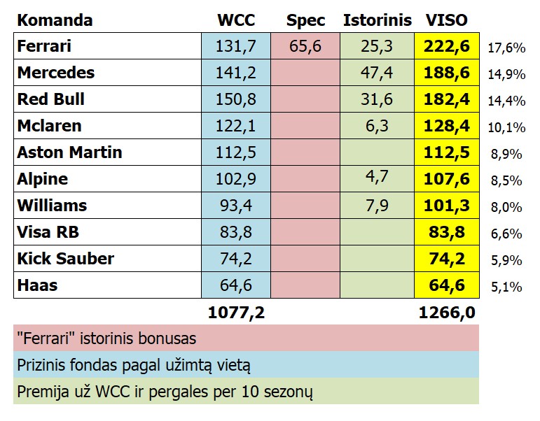 - likusi suma 1,077 mlrd. USD skirstoma pagal vietą 2023 m. konstruktorių įskaitoje: