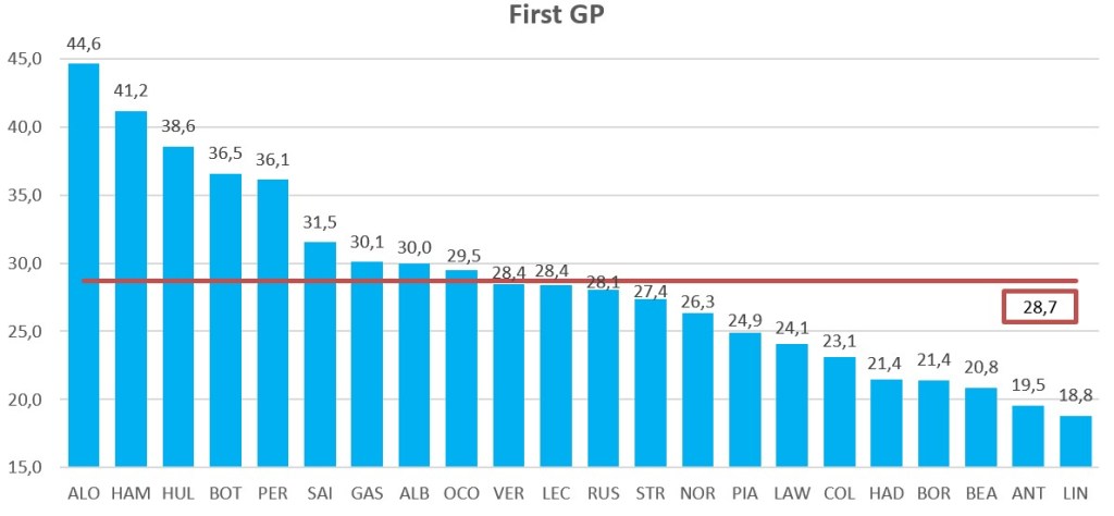Su “pole” pozicijom situacija kiek kitokia, yra 4-5 pilotai su pakankamai aukštais skaičiais šioje statistikoje, tačiau Hamiltono “Mercedes” laikais pasiektą rezultatą, bent kelis metus bus sunku pagerinti.